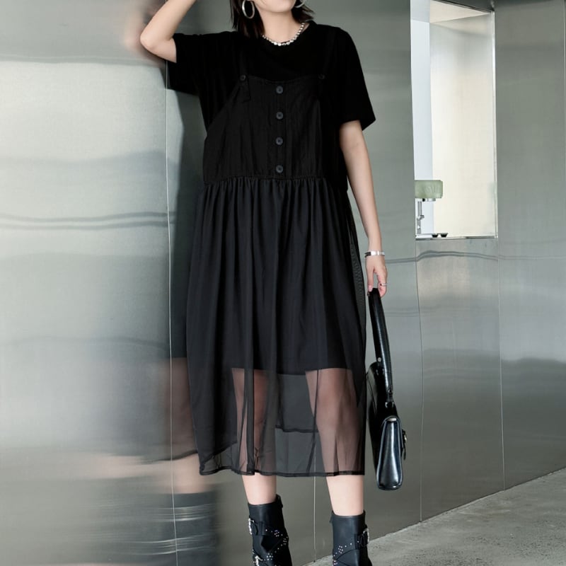 Aラインキャミソールワンピース&Tシャツセット ショートスリーブラウンドネック 2color ON0930