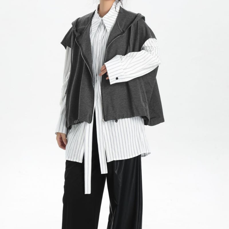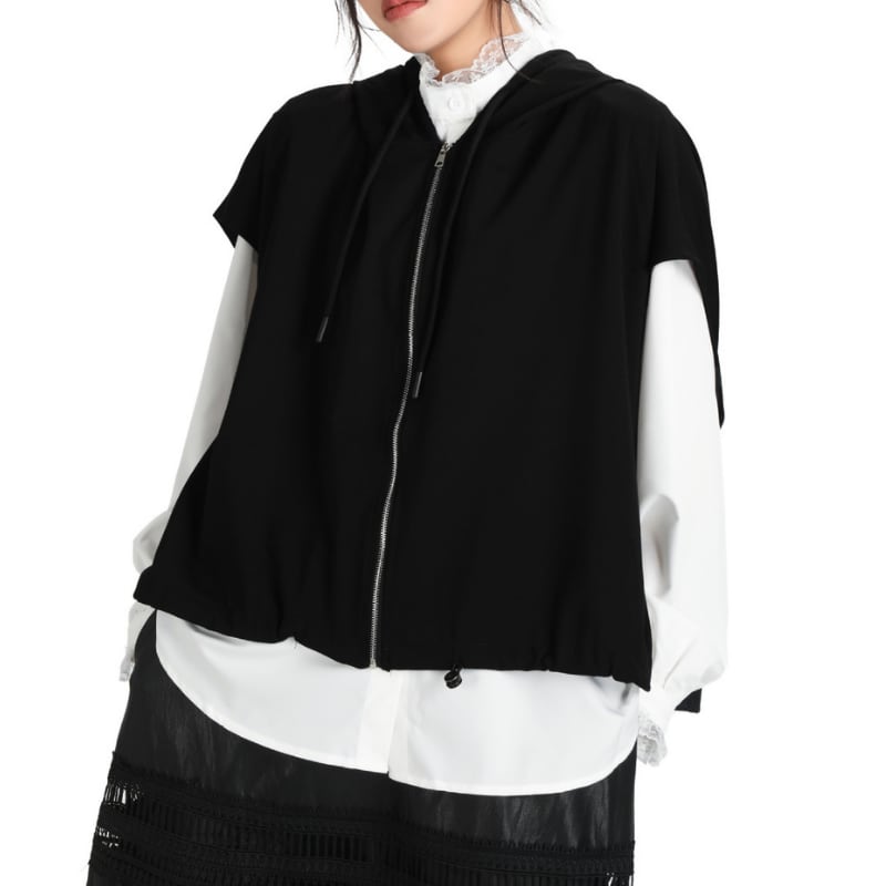 ジップアップフーデッドベスト ドロップショルダー Aラインシルエット 2color JK0288