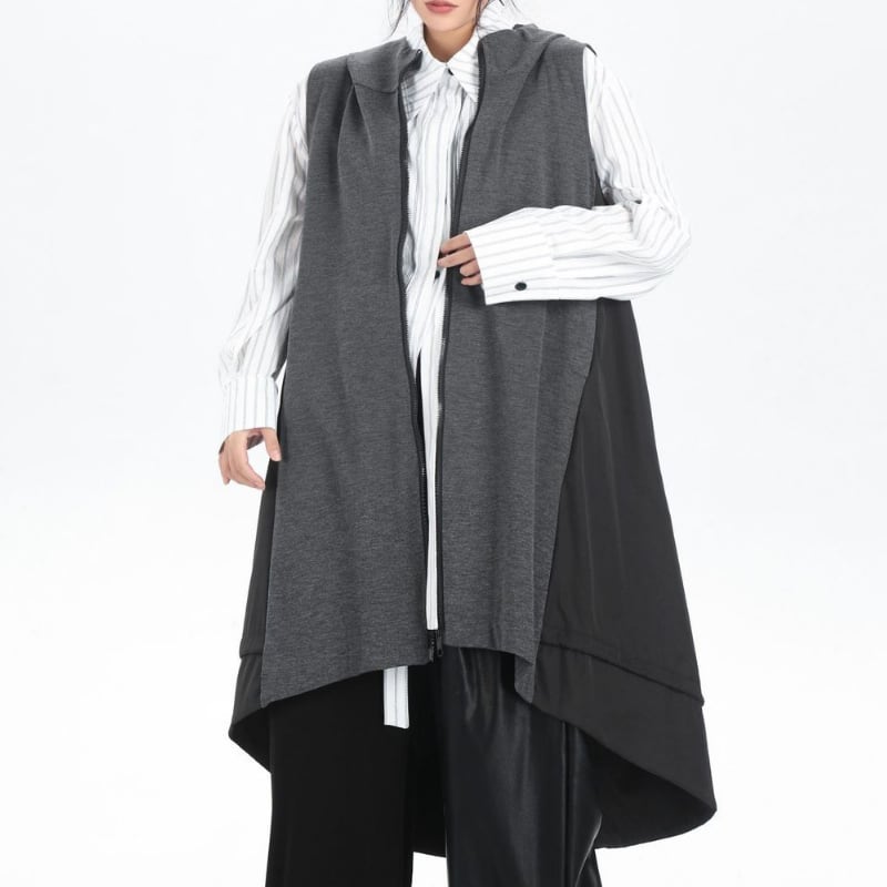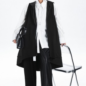 アシンメトリーデザイン ロング丈 ダブルレイヤーノースリーブジップアップベスト 2color JK0291