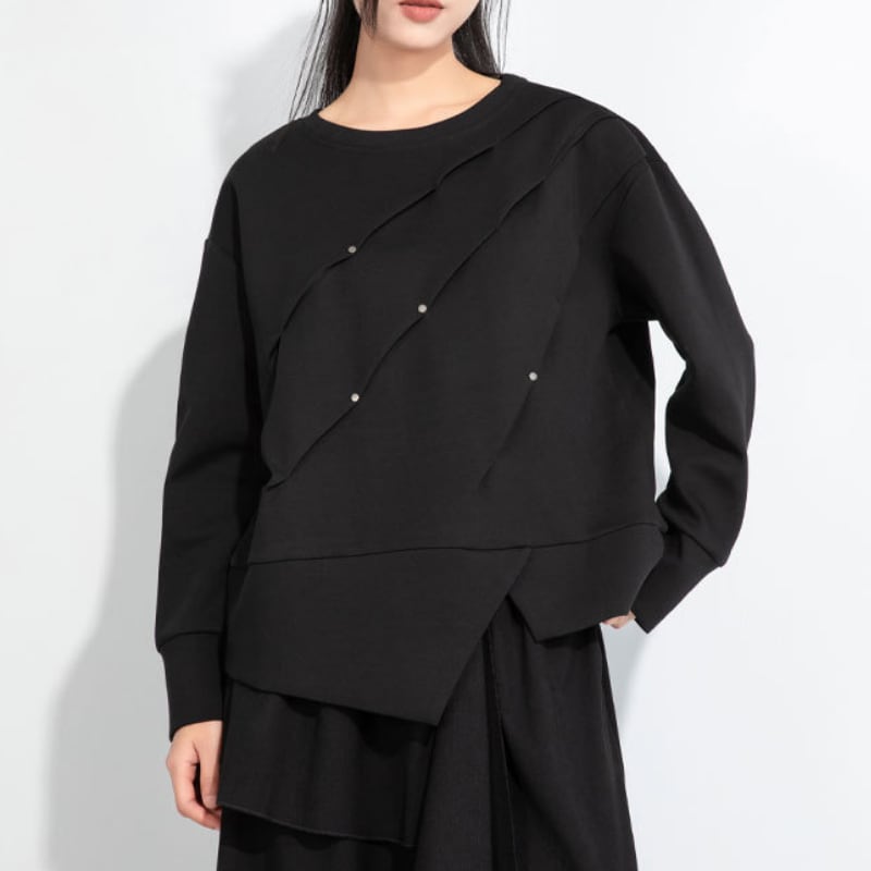 ドロップショルダーアシンメトリー長袖クルーネックスウェット 1color PU0419