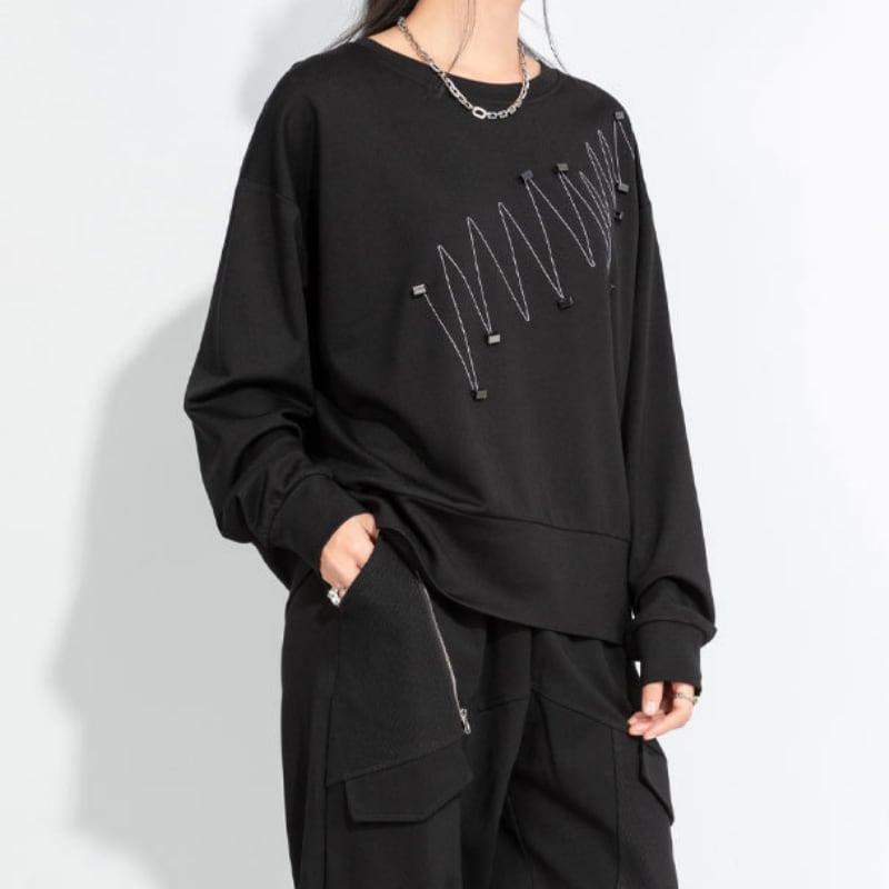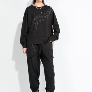 装飾付き クルーネック長袖ボックスシルエットトップス 1color PU0421