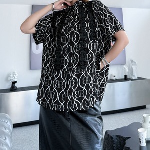幾何学模様 バンドカラー半袖シャツ 1color BL0518