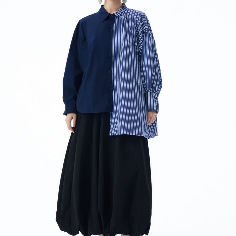 スタンドカラーバイカラーアシンメトリーシャツ 1color BL0520