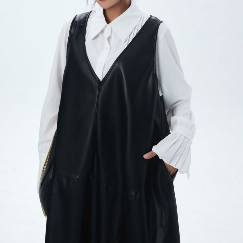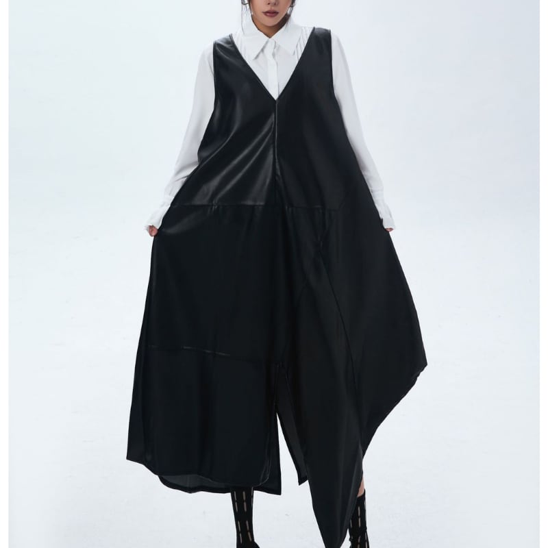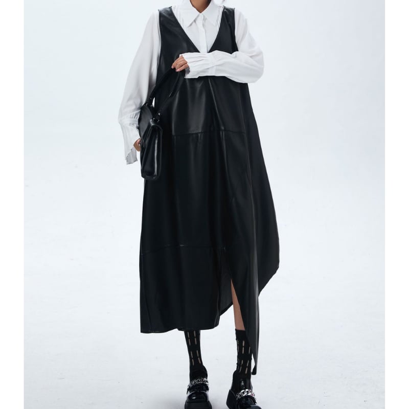 Vネック サイドスリット ノースリーブ 綿素材 マキシ丈ワンピース 1color ON0953