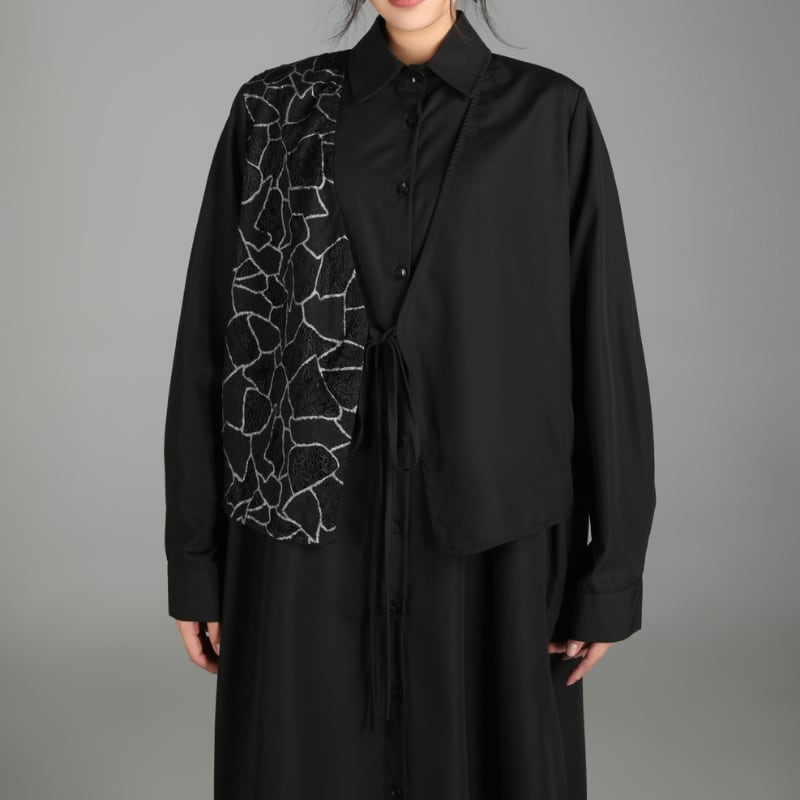 アシンメトリーデザインロング丈シャツワンピース 1color ON0956