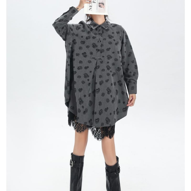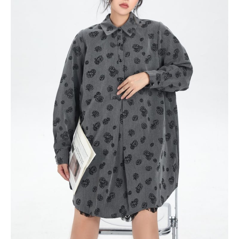 裾レースがアクセントになったロングシャツワンピース。ローズ柄が落ち着いた印象を与え、上品な着こなしを演出します。一枚で着てもサマになるシルエットで、デイリーユースからちょっとしたお出かけまで幅広く活躍します。