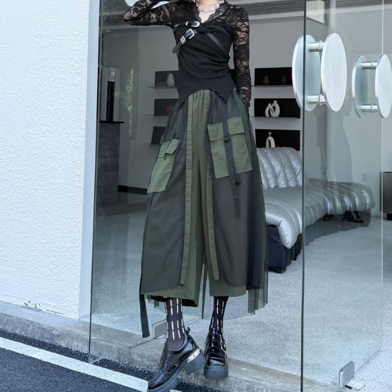 メッシュレイヤード ワイドクロップドパンツ 2color PT0400