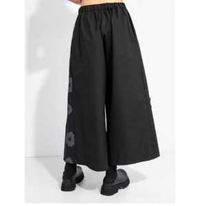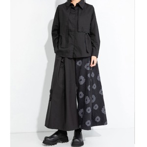 アシンメトリーなデザインが目を惹くワイドレッグパンツ。無地のブラックと花柄の切り替えが、モードで洗練された印象を与えます。シンプルなトップスと合わせるだけで、コーディネートの主役として活躍します。ゆったりとしたワイドシルエットで、快適な履き心地も魅力です。