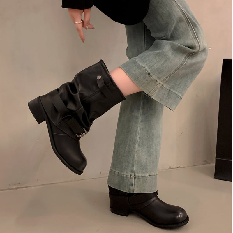 クシュクシュデザインレザーショートブーツ 2color SH0118