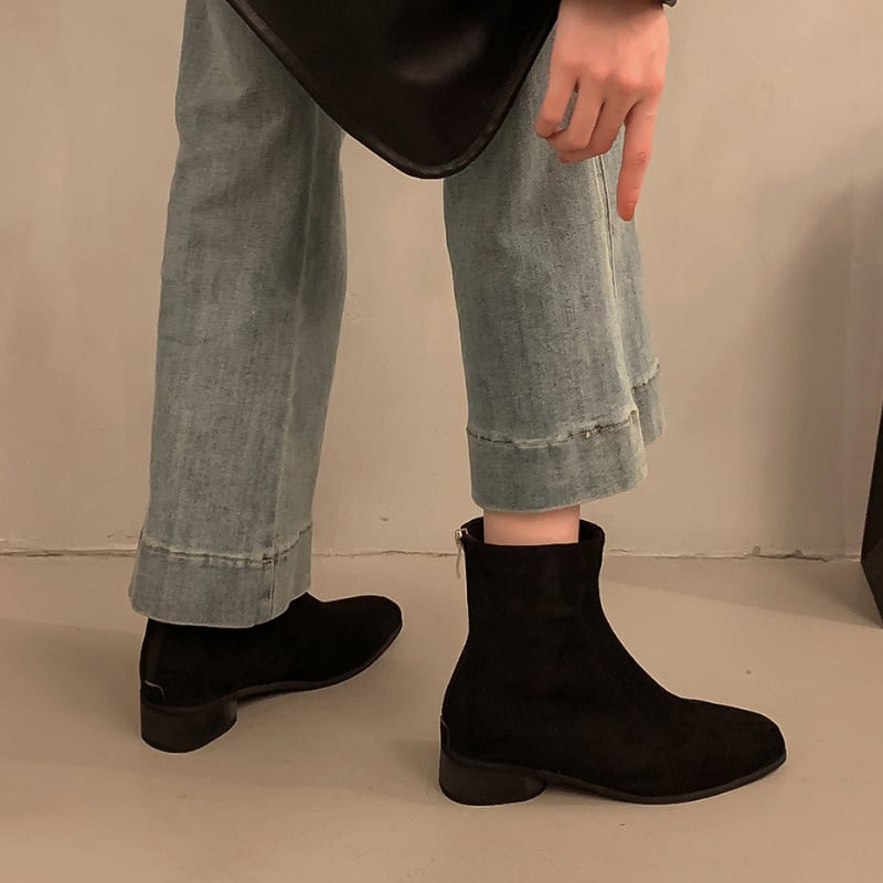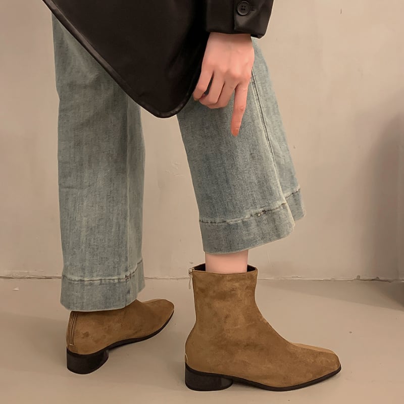 スエード素材 サイドジップ スクエアトゥ アンクルブーツ 2color SH0119