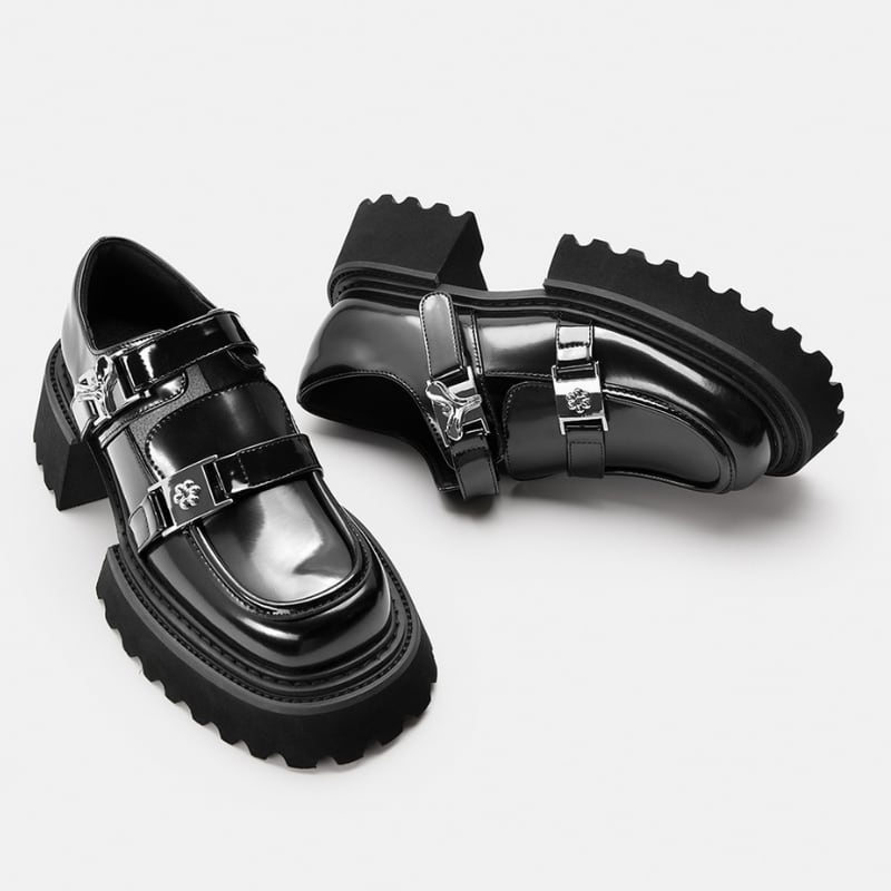 厚底プラットフォームソールダブルストラップローファー 1color SH0127