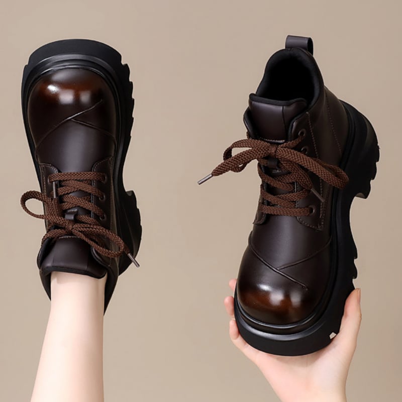 レースアップデザインと厚底ソールが特徴的なローカットシューズ。