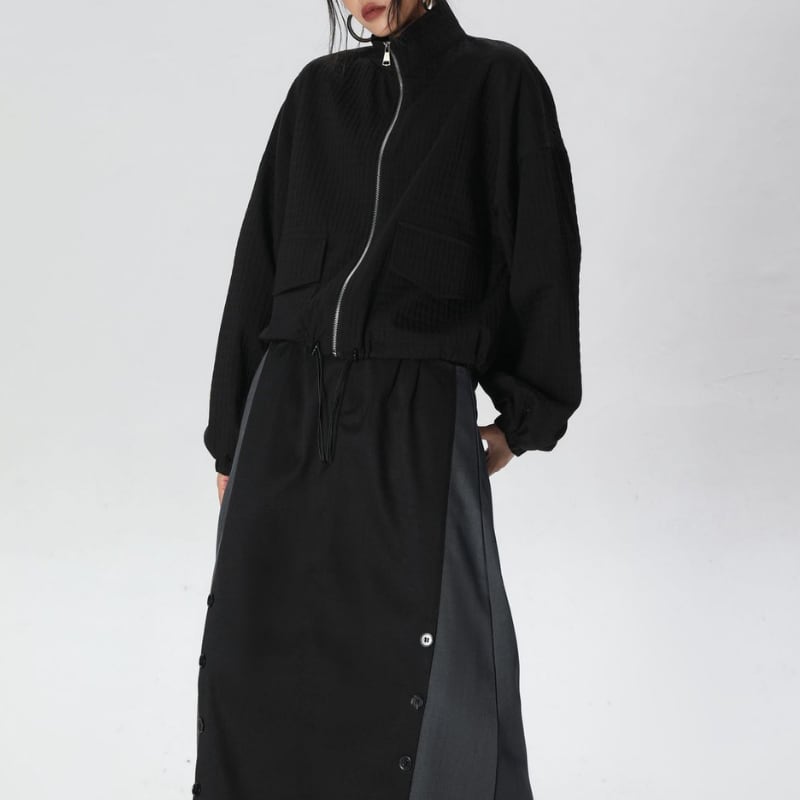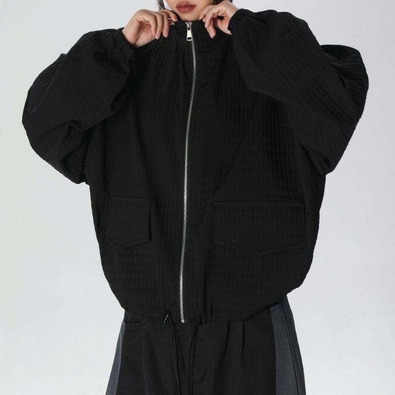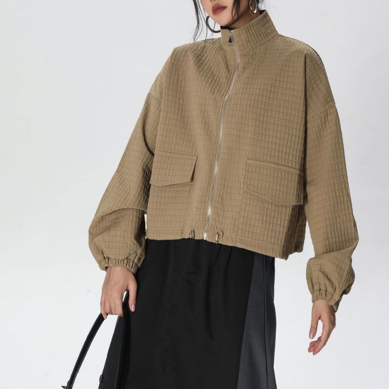 ジップアップ パッチポケット ヒップ丈 ブルゾン 2color JK0301