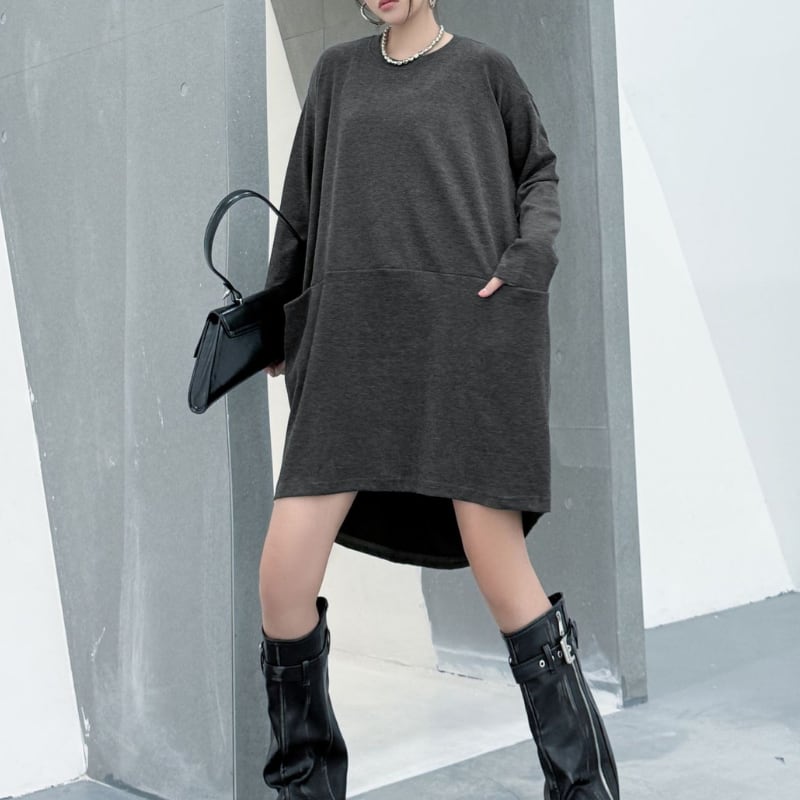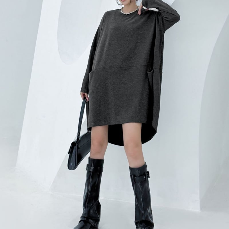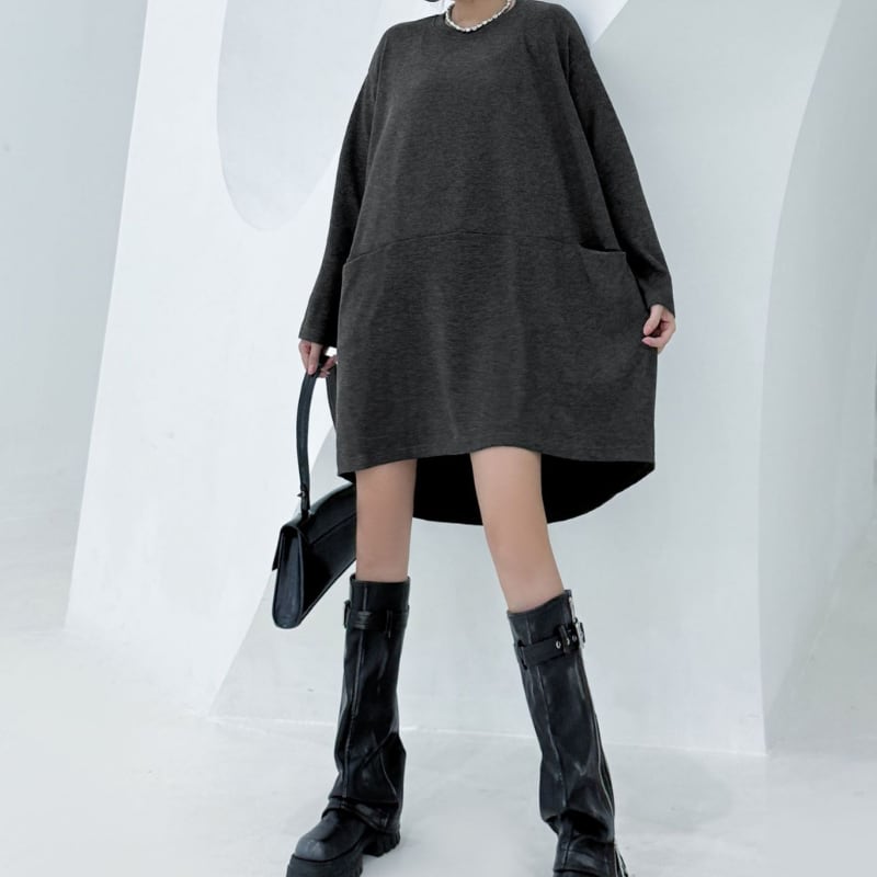 パッチポケット 長袖 オーバーサイズ ミニワンピース 1color ON0971