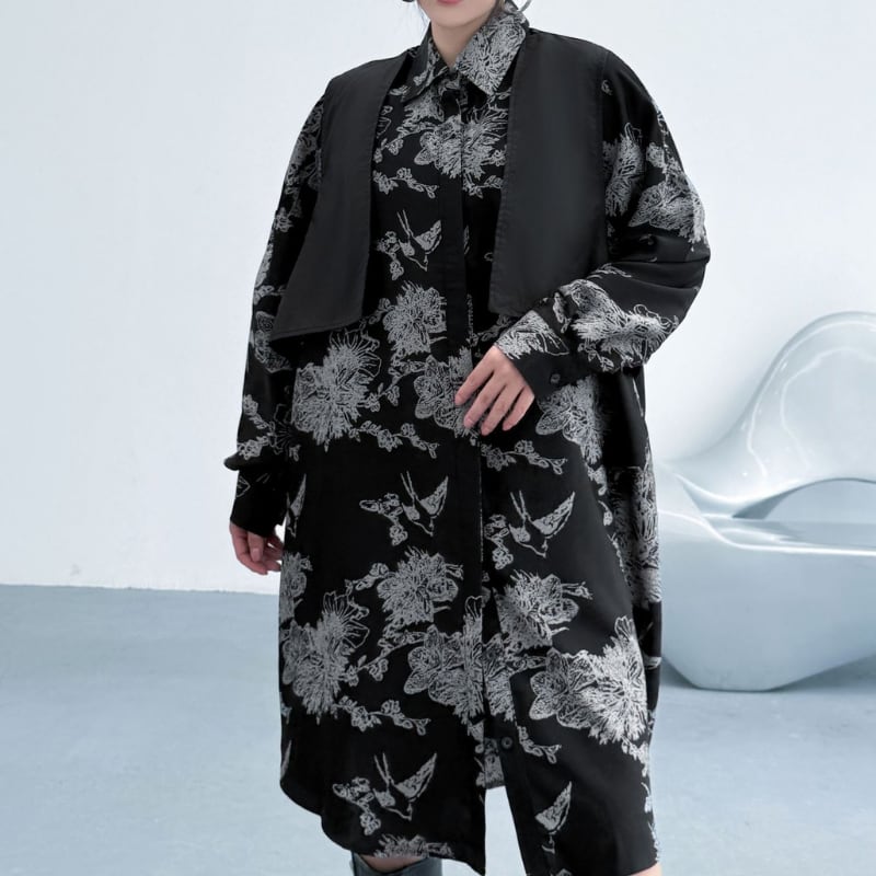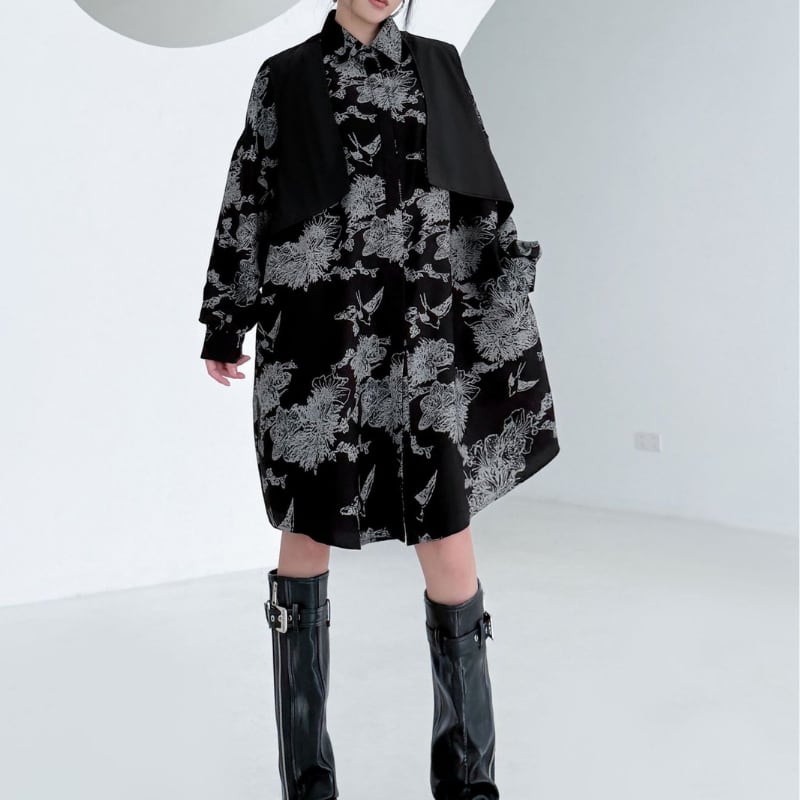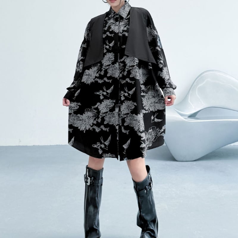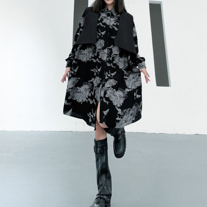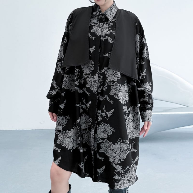 長袖 シャツカラー ミモレ丈 シャツワンピース 1color ON0972