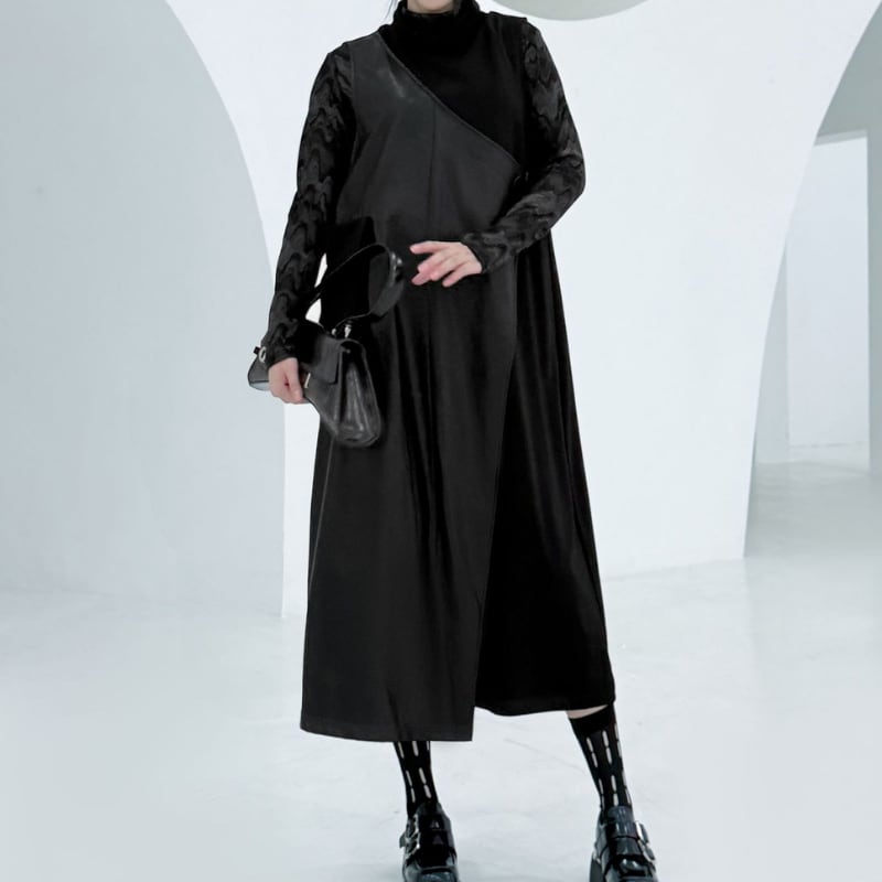 ラップ風 マキシ丈 長袖 ワンピース 1color ON0974