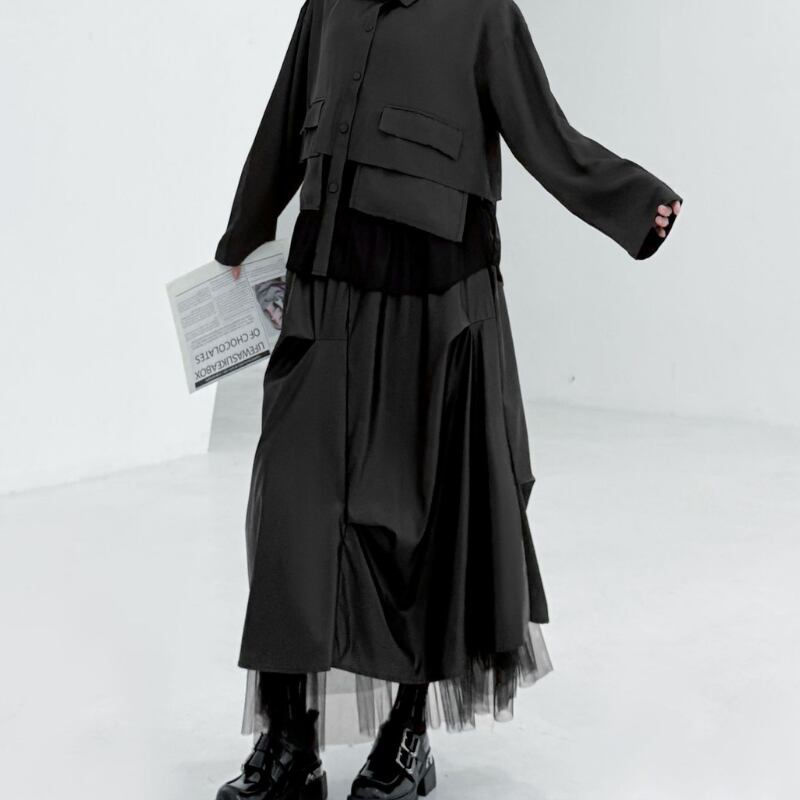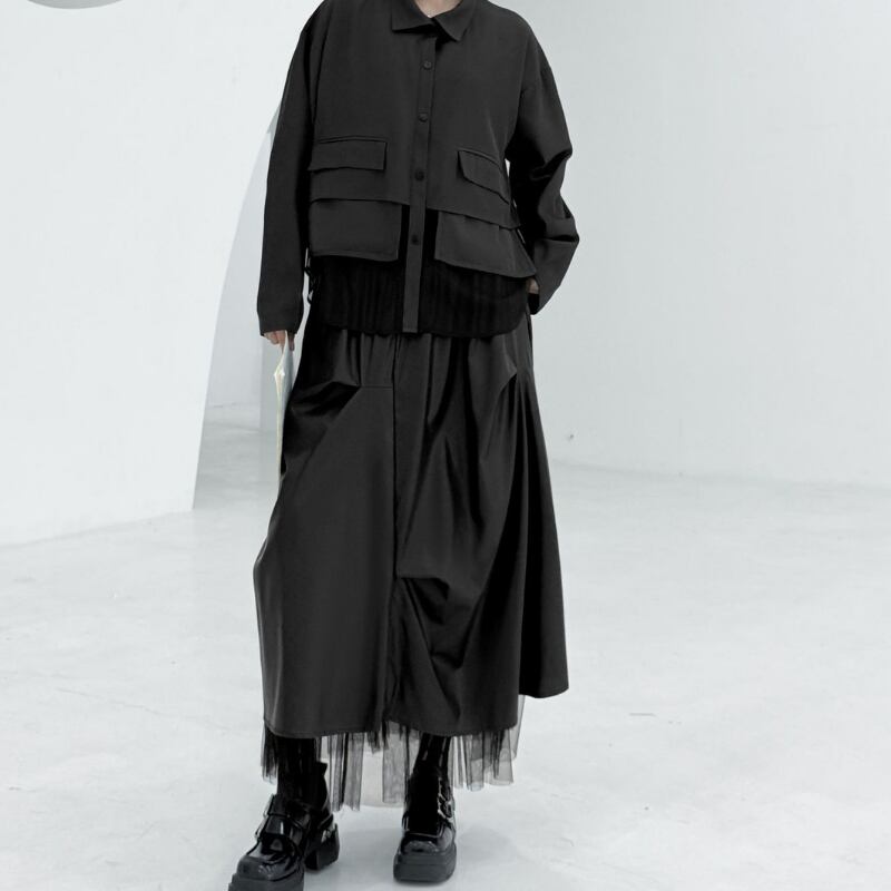 切替 アシンメトリー ミモレ丈 スカート 2color SK0322