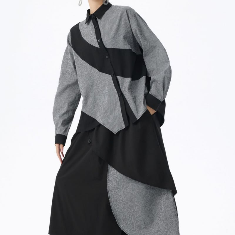 パネル 長袖 シャツカラー オーバーサイズ シャツ 2color BL0531