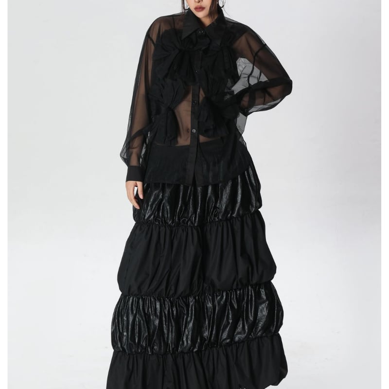 フリル 長袖 シャツカラー シアー シャツ 1color BL0534