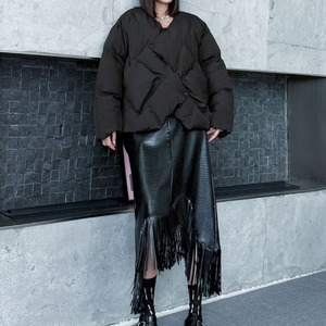 ゆったりとしたオーバーサイズシルエットが魅力的なダウンジャケット。ラップ風のデザインが、普段のコーディネートにモードなエッセンスをプラスします。カジュアルな着こなしにはもちろん、あえてきれいめなアイテムと合わせることで、ワンランク上のお洒落を楽しめます。