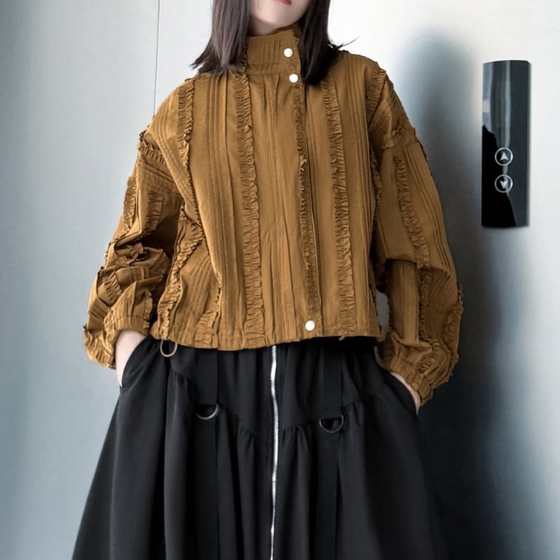 フリル 長袖 ショート丈 ボタンフロント ジャケット 2color JK0317