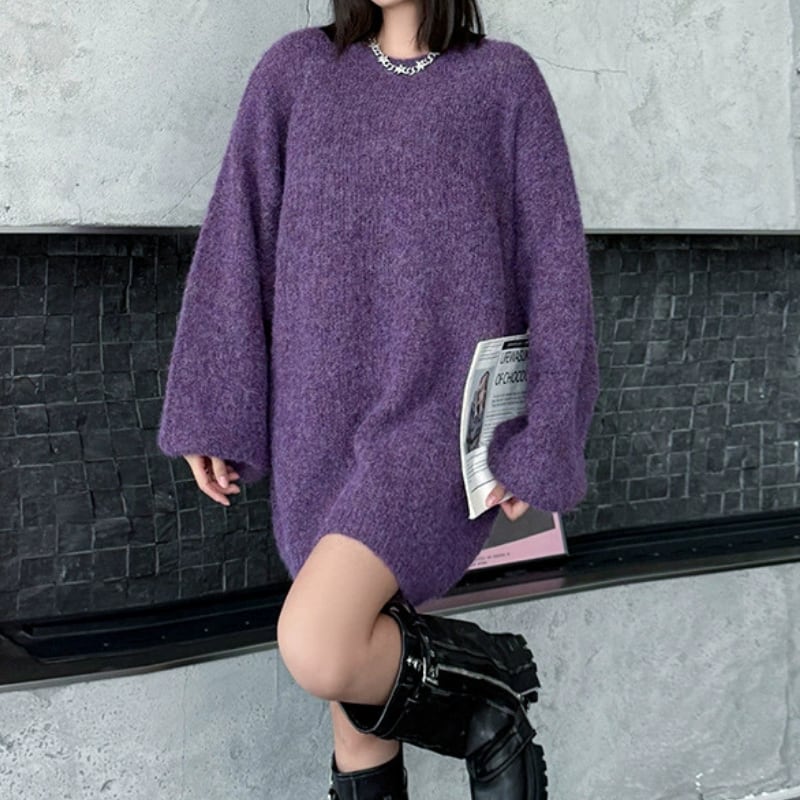 長袖 オーバーサイズ ミニ丈 ニット 4color PU0438