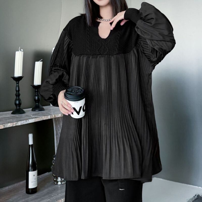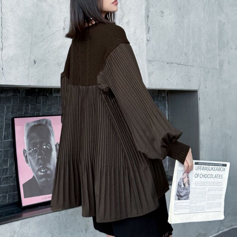 プリーツ 切替 長袖 ヒップ丈 ブラウス 2color PU0440