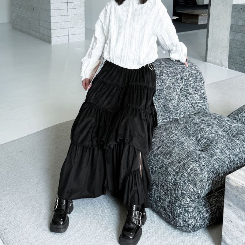ティアード マキシ丈 スリット入り スカート 2color SK0325