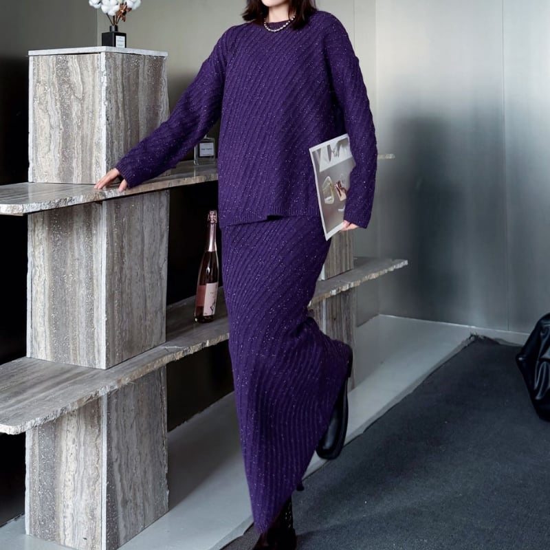 長袖 ミモレ丈 ニット&スカート(上下個別販売) 2color ST0210