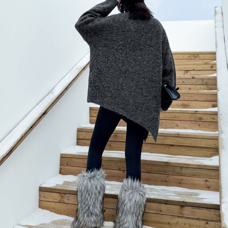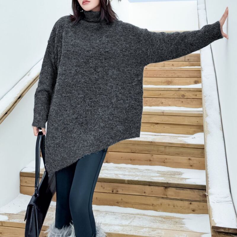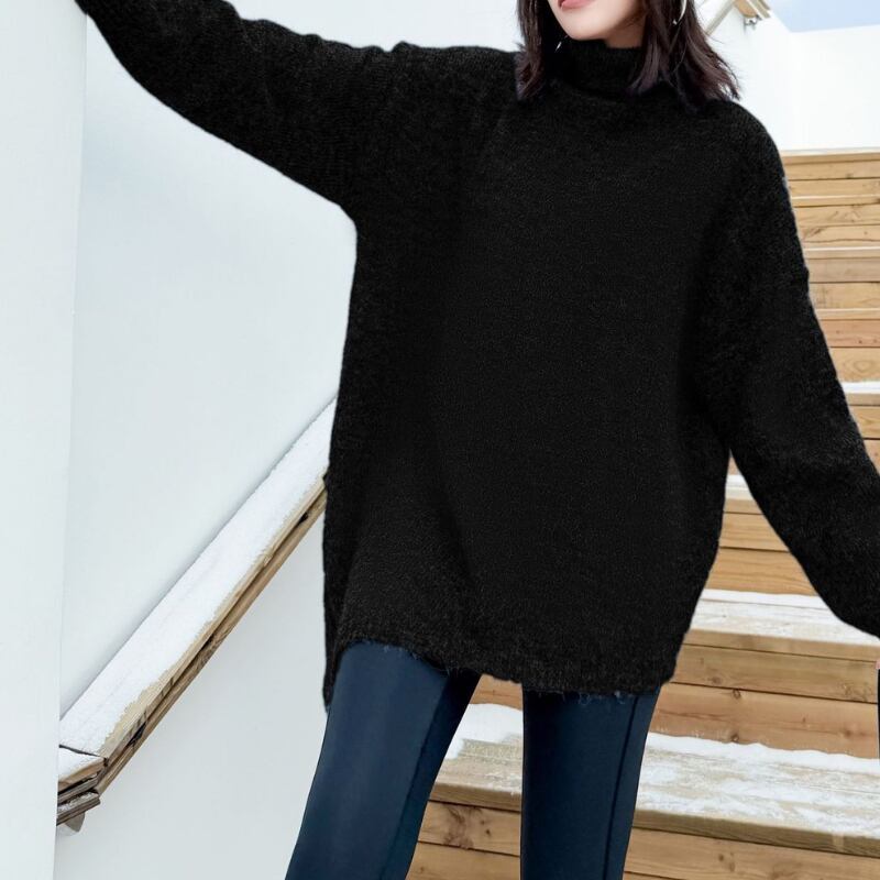 ゆったりとしたシルエットが魅力の長袖ニット。ヒップが隠れる丈感で、気になる体型もカバーしてくれます。オーバーサイズなので、リラックスした着心地で、普段使いに最適です。