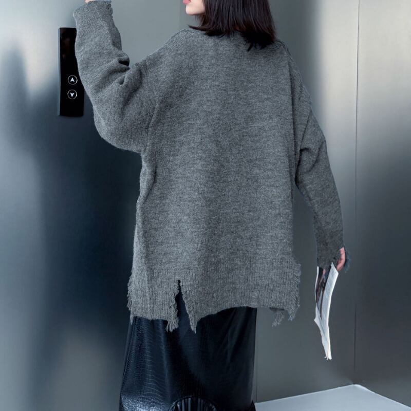 フリンジが印象的なクルーネックニット。
