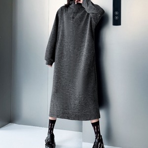 ボタンネック 長袖 ミモレ丈 ワンピース 2color ON0980