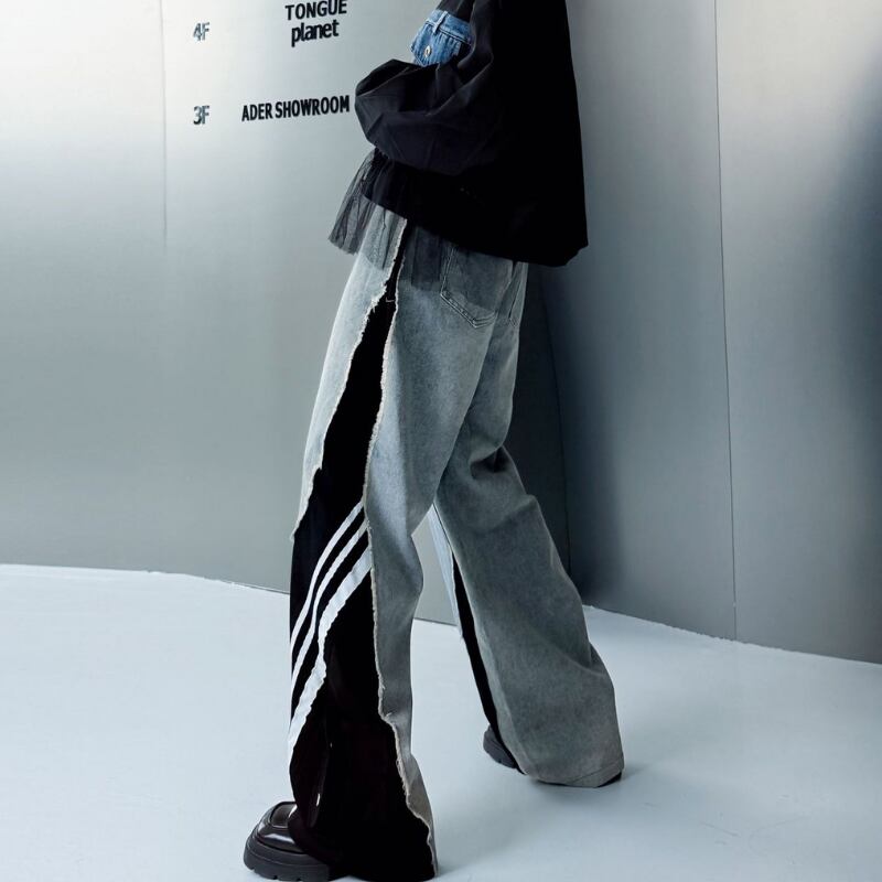 パッチワーク ワイドレッグ フルレングス デニムパンツ 2color PT0418