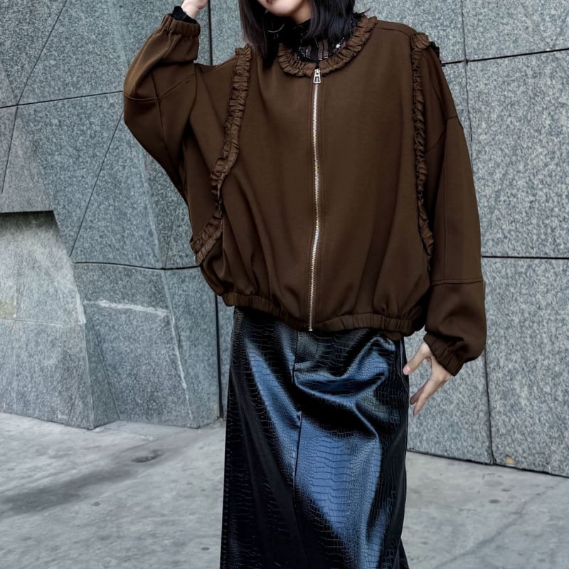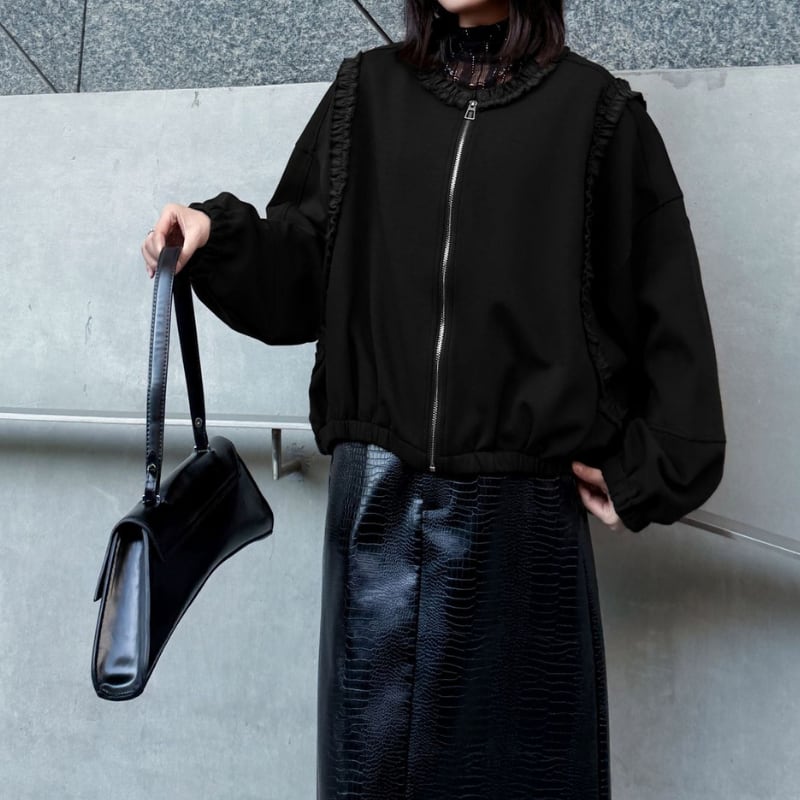 ジップアップ ドロップショルダー ヒップ丈 ブルゾン 2color JK0329