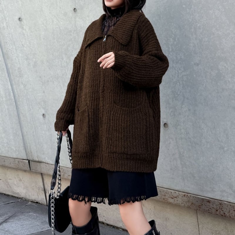 長袖 パッチポケット ジップアップ ニット ジャケット 2color JK0330