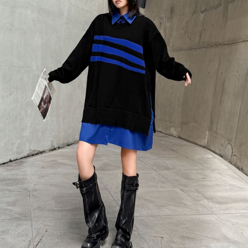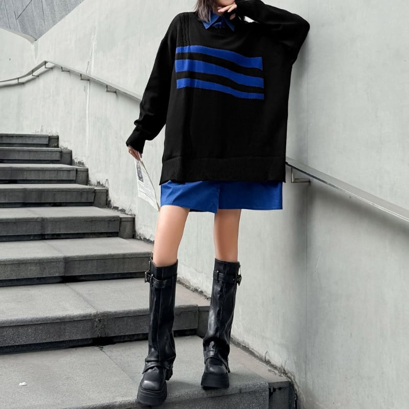 長袖 オーバーサイズ ボーダー柄 ニット 1color PU0460