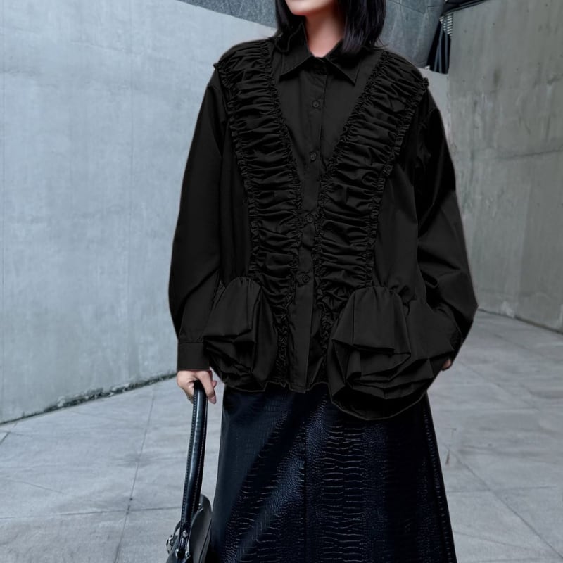 フリル 長袖 シャツカラー ブラウス 3color BL0551