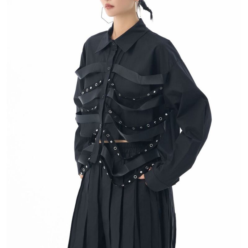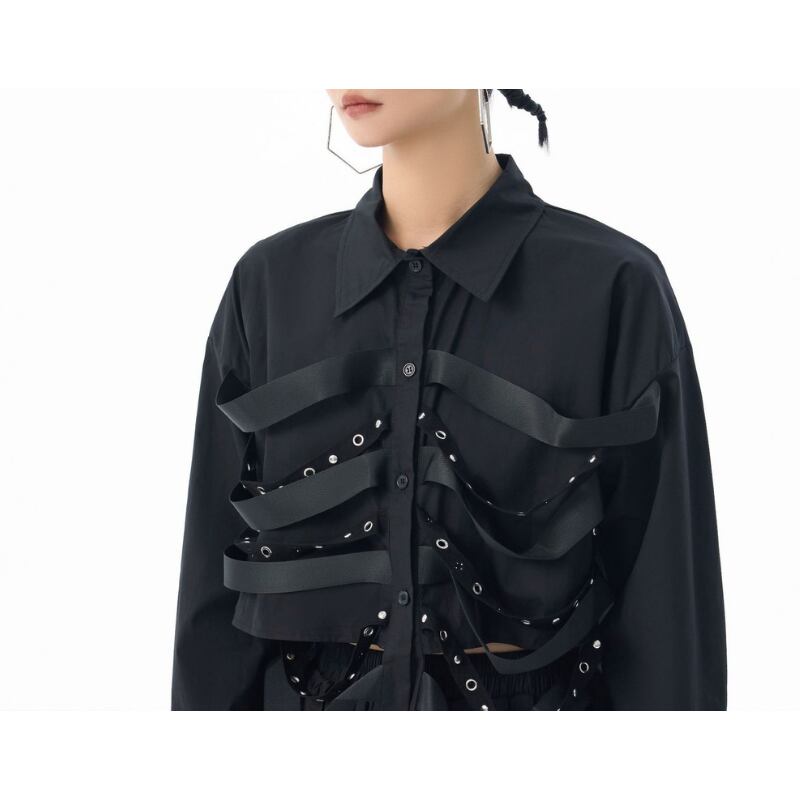 レースアップ 長袖 クロップド シャツ 1color BL0557