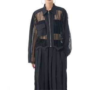 特徴的なメッシュ素材が、コーディネートにアクセントをプラス。