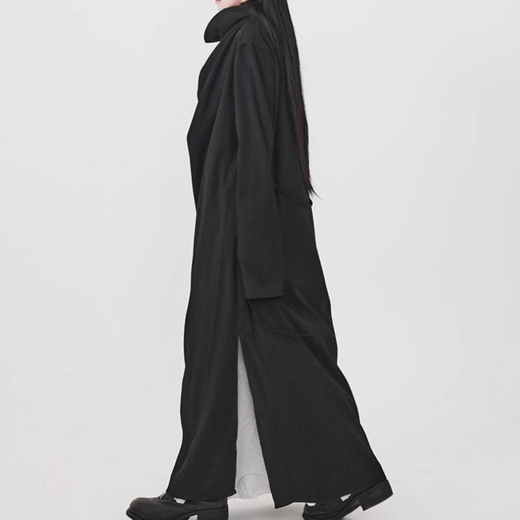 ロング丈のデザインが、洗練された雰囲気を演出します。