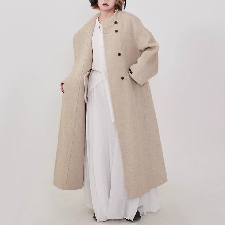 スタンドカラー マキシ丈 ダブルブレスト コート 2color CO0193