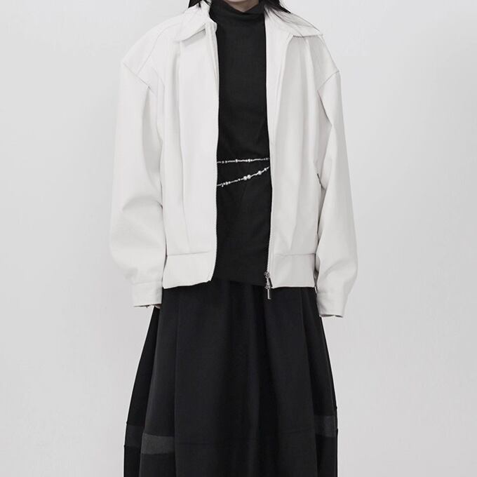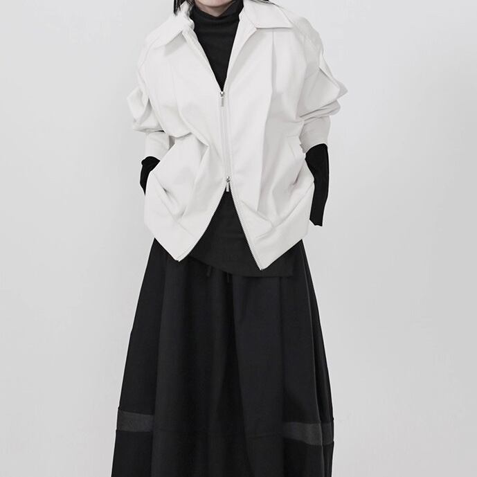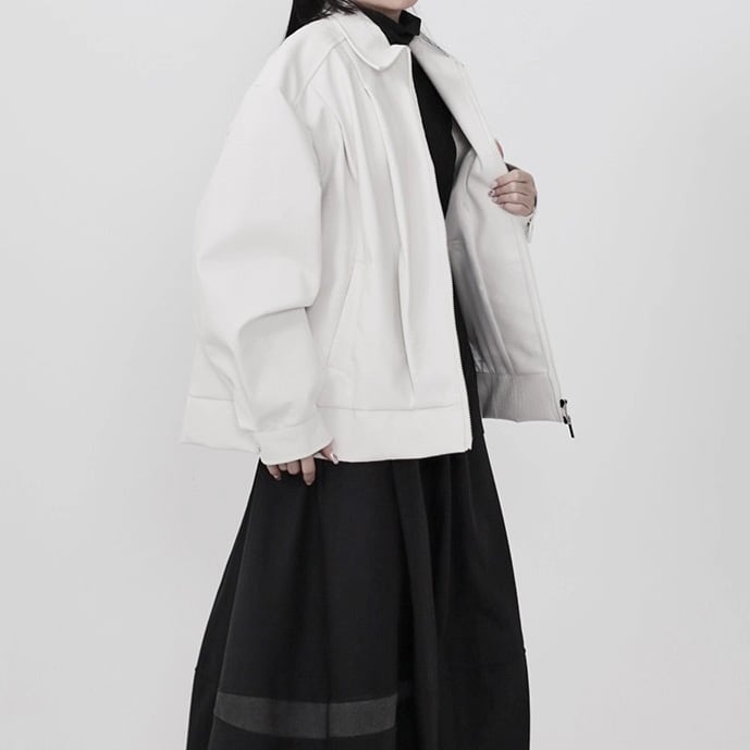 ジップアップ オープンカラー 腰丈 ジャケット 2color JK0321