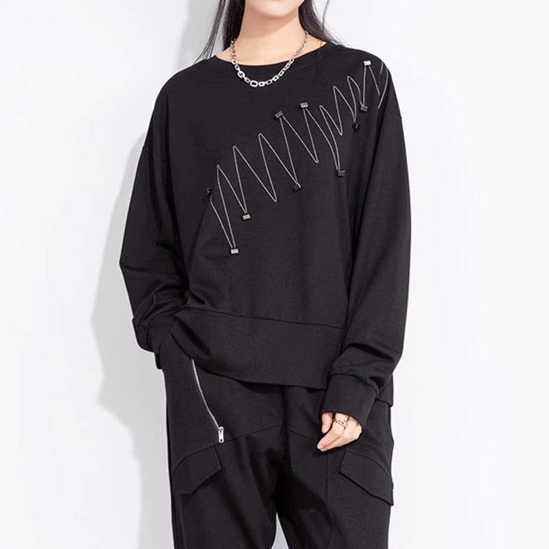 デザイン 長袖 ヒップ丈 クルーネック プルオーバー 1color PU0454