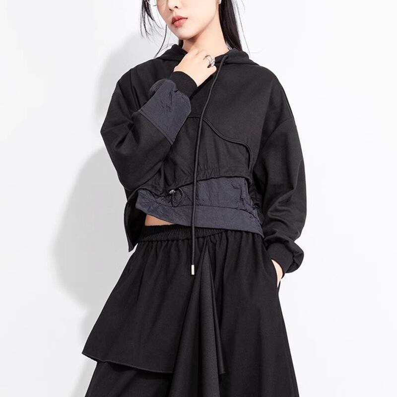 フード付き 長袖 クロップド丈 アシンメトリースウェットプルオーバー 1color PU0456