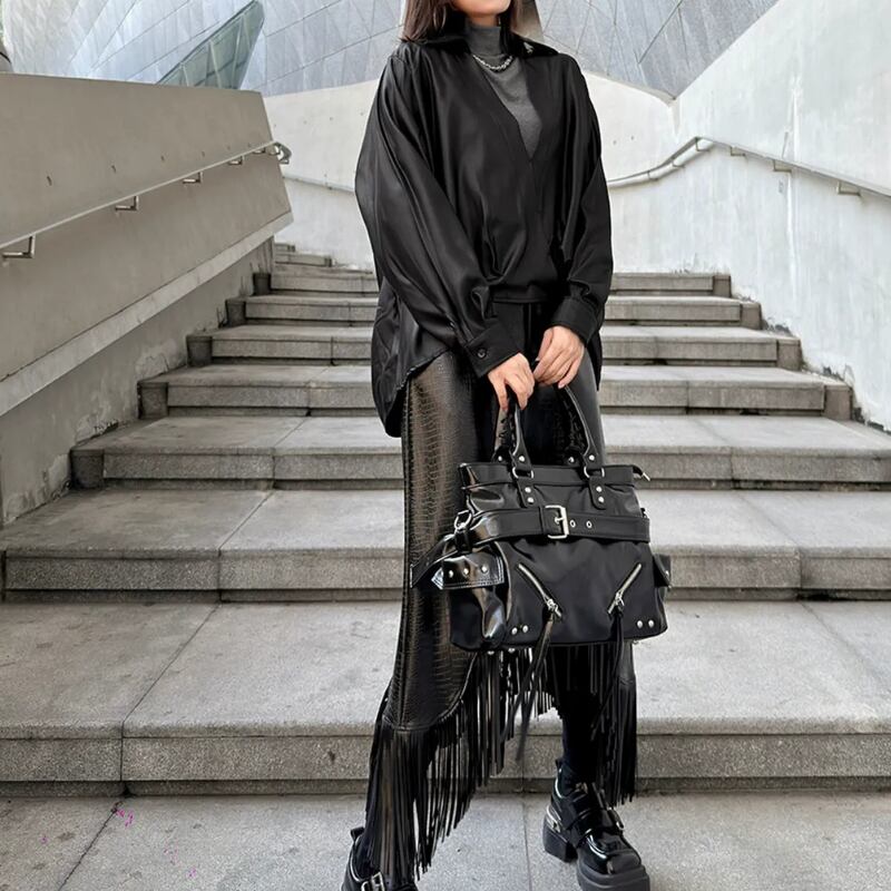 オープンカラー 長袖 ヒップ丈 ドルマンスリーブ シャツ 1color PU0472