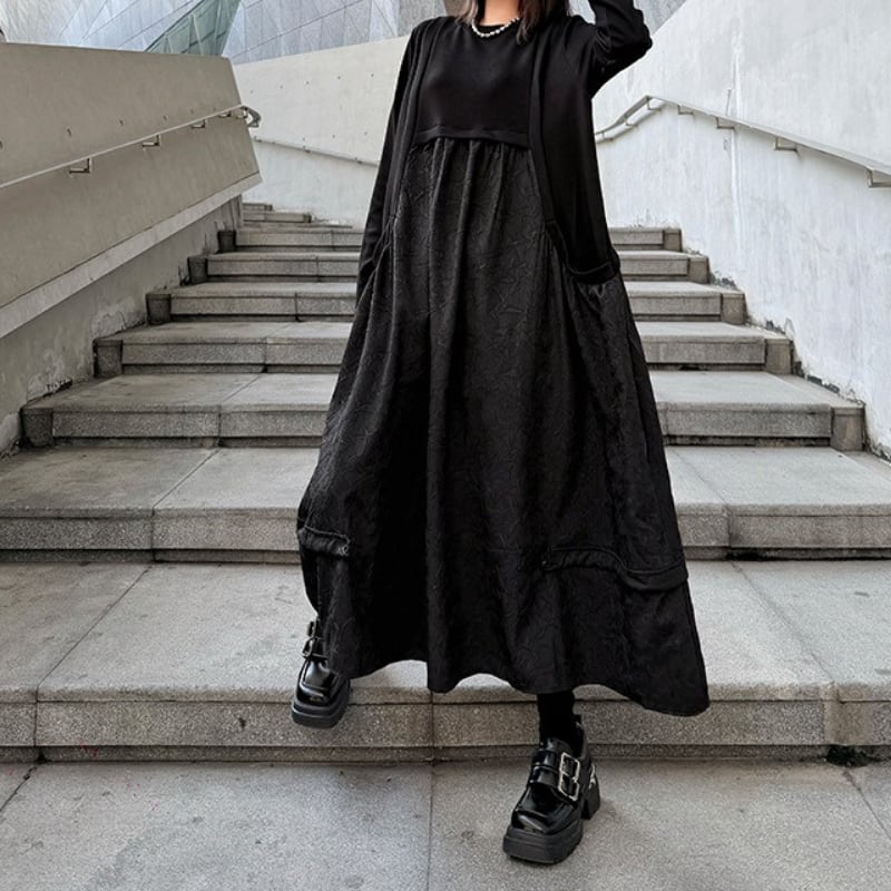 長袖 Aライン マキシ丈 ワンピース 1color ON0995