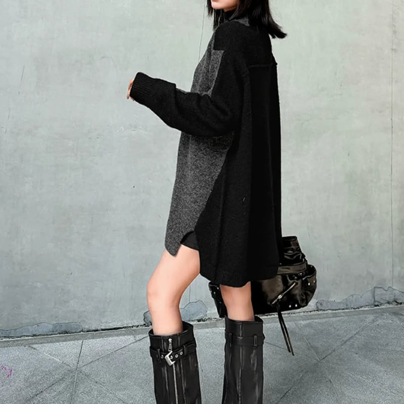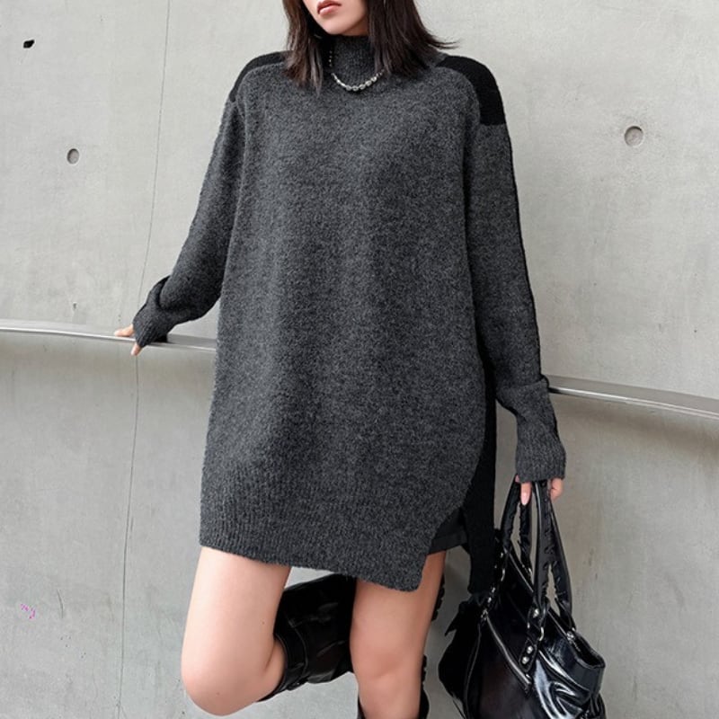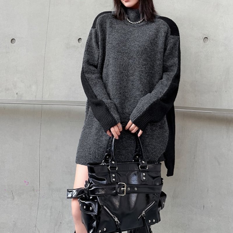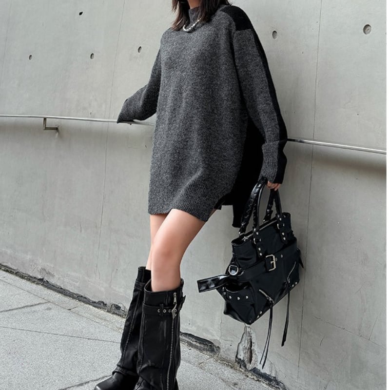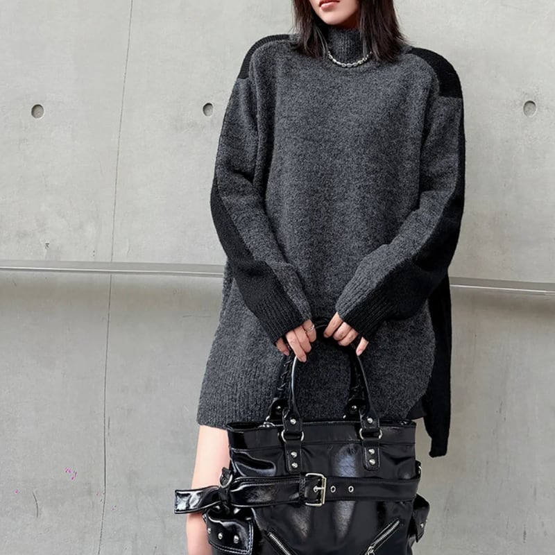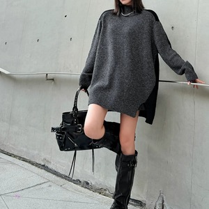 長袖 オーバーサイズ 配色 ニット 1color PU0475