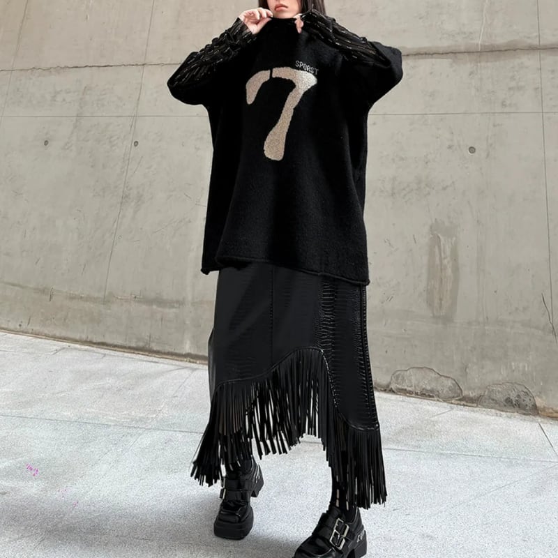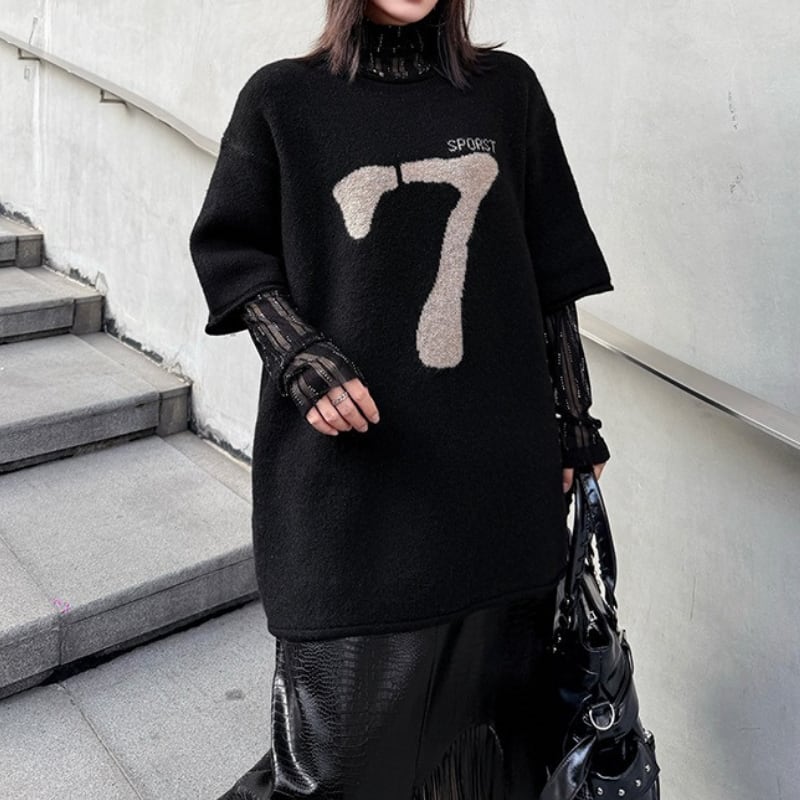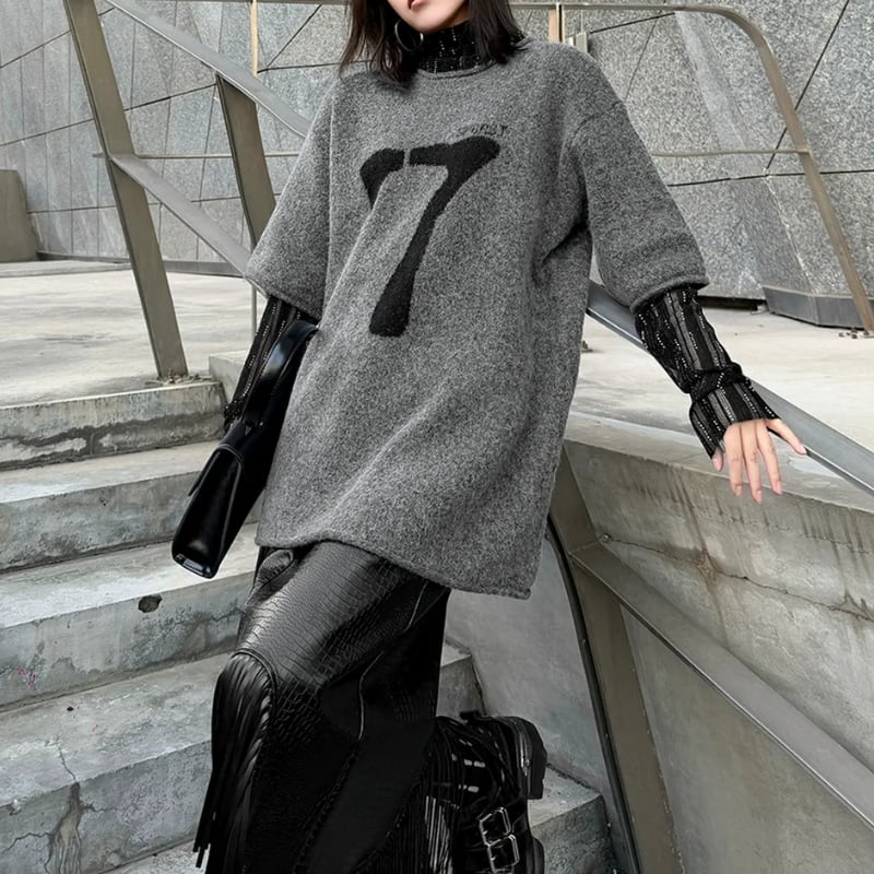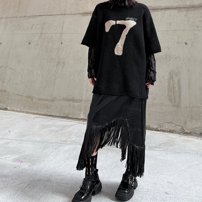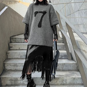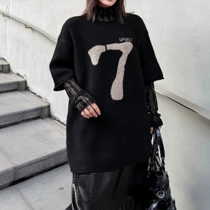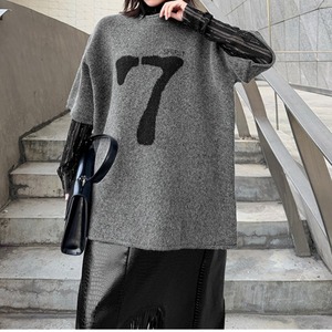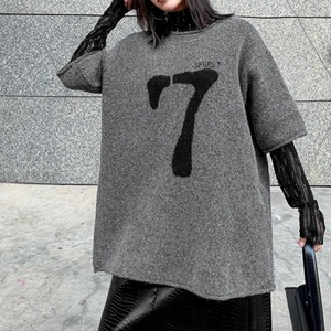 ナンバー入り ハーフスリーブ オーバーサイズ ニット 2color PU0477