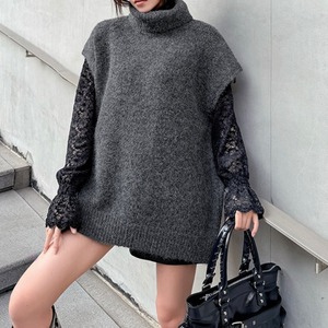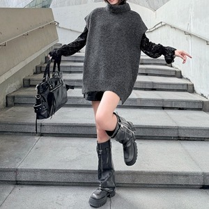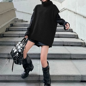 ハイネック クロップド丈 ノースリーブ ニット 2color PU0478