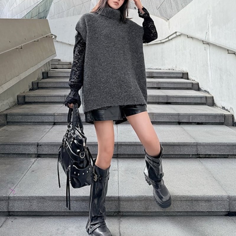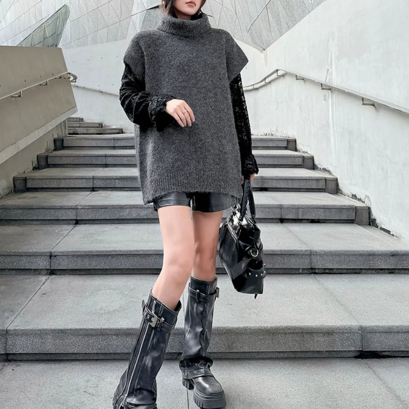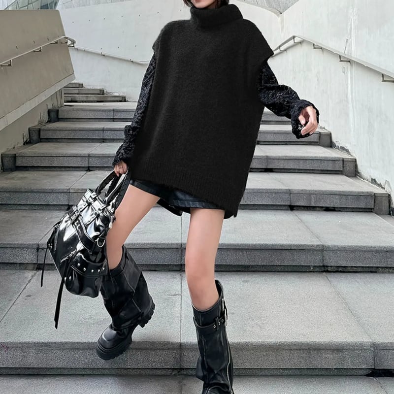 ハイネックデザインが、カジュアルながらも洗練された印象を与えます。